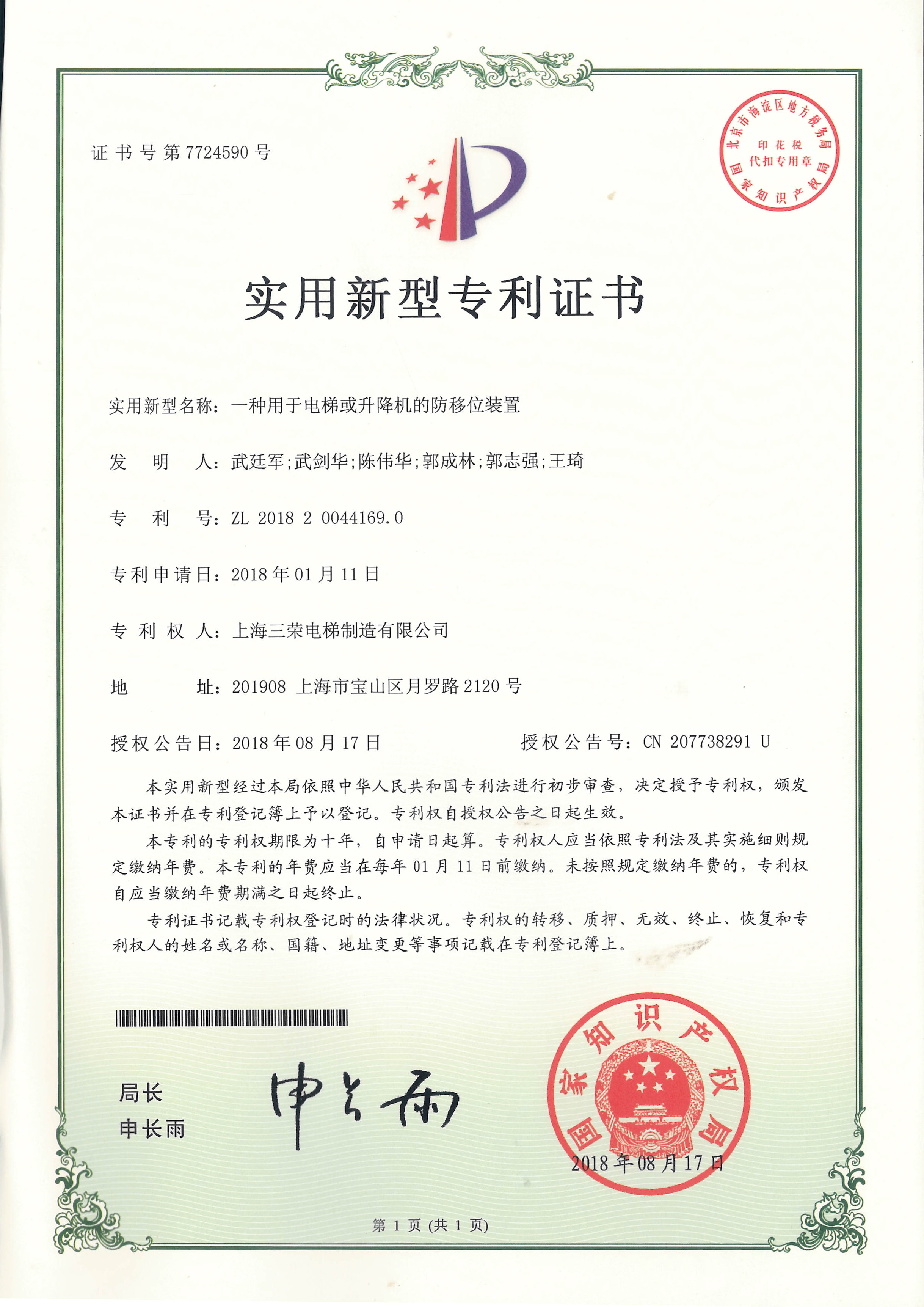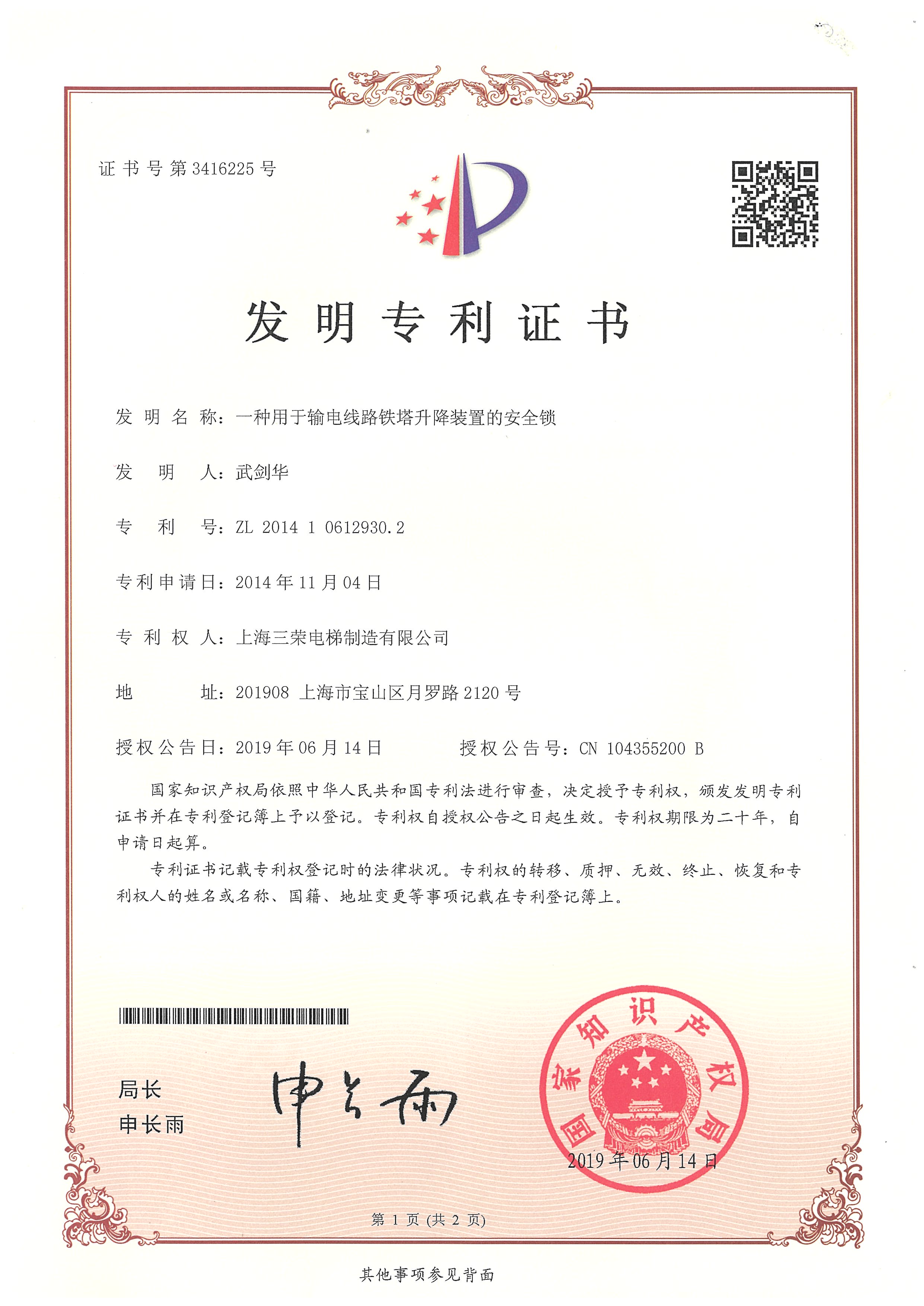 武剑华电梯协会任职证书